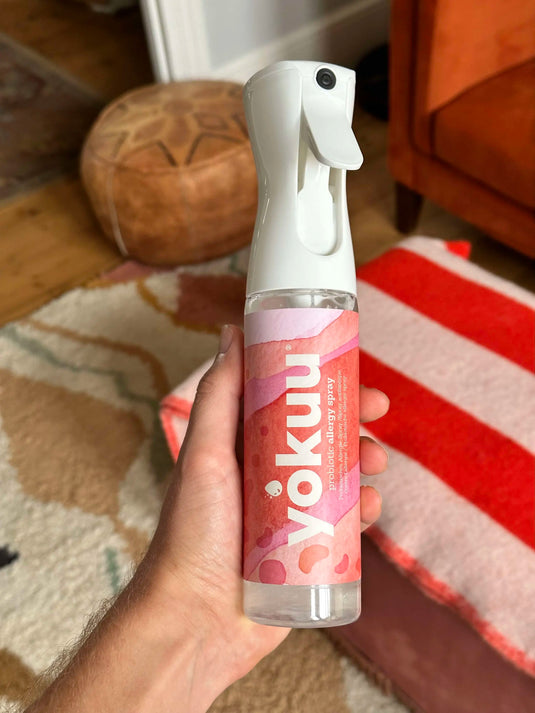 At YOKUU, we understand the struggle. That's why we wanted to create a solution that reduces allergens inside your home. We do this by selecting probiotic strains that can effectively reduce the allergenic load inside your home in a 100% natural way.