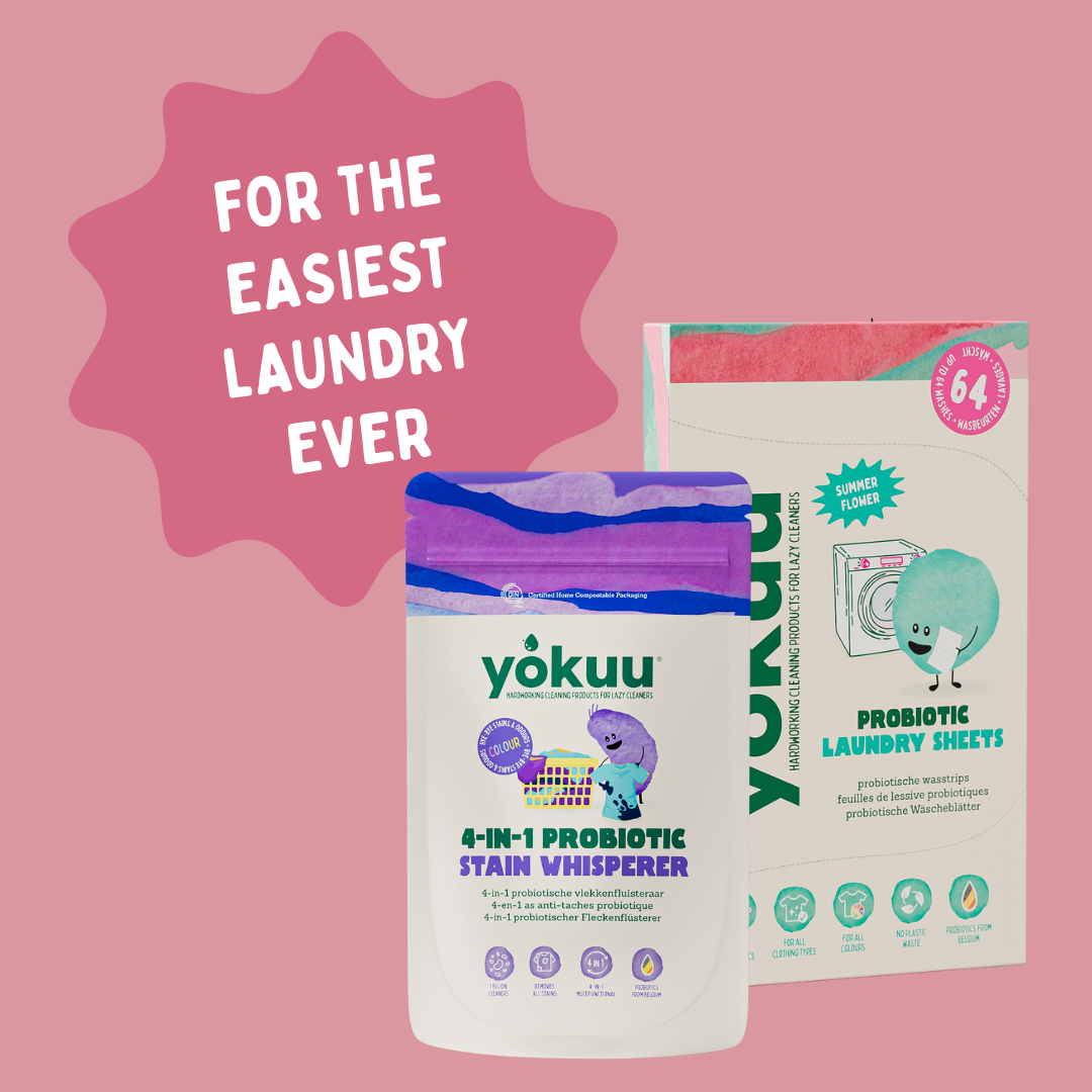 Von der täglichen Wäsche bis zum schlimmsten Curry-Fleck - dieses probiotische Duo kann alles. Unsere Waschstreifen machen Waschen super easy. Der Fleckenflüsterer kümmert sich um die harten Fälle – mit Enzymen und Milliarden Mikrohelfern.