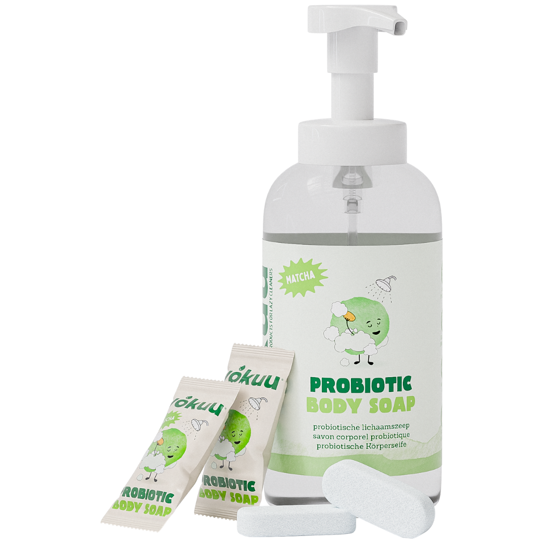 Schäumen Sie mit 1 Milliarde Hautschutzmitteln. Unsere probiotische Körperseife erfrischt, ohne auszutrocknen. Mit 2 Nachfüllperlen. Duft: Matcha.