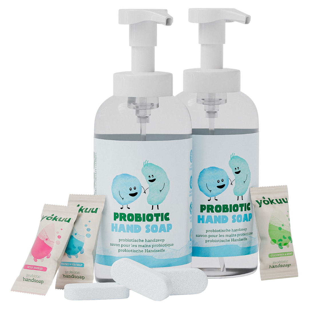 Unsere schaumige Handseife reinigt und schützt das natürliche Gleichgewicht Ihrer Haut mit Milliarden probiotischer Helfer. Mit 3 Nachfüllperlen. Duftnoten: Thymian & Meersalz, Gurke & Minze, Waldbeeren