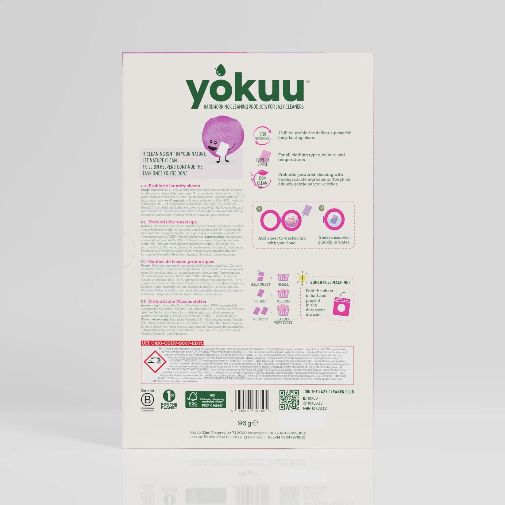 - Each recyclable pack contains 32 probiotic laundry sheets (up to 64 washes!).